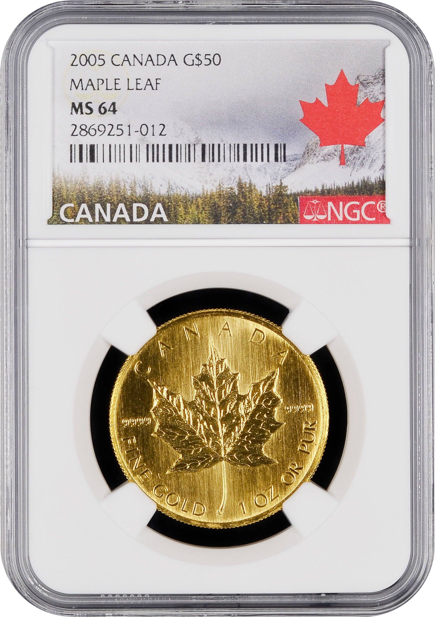 2005 $50 Canada Gold Maple Leaf MS64 - NGC Graded Coin