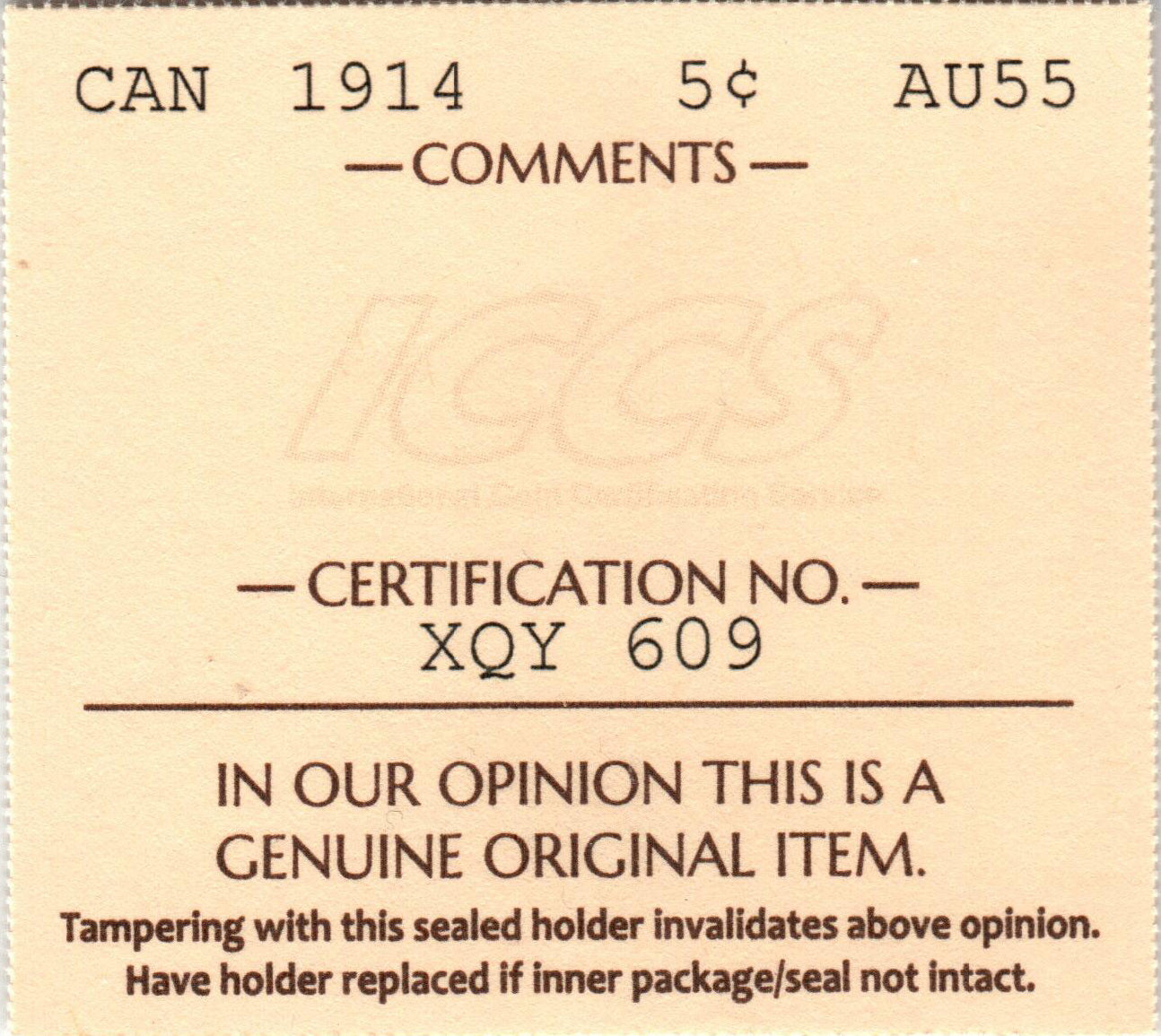 Canada Silver 1914 5 cents (George V) 1.167gr .925