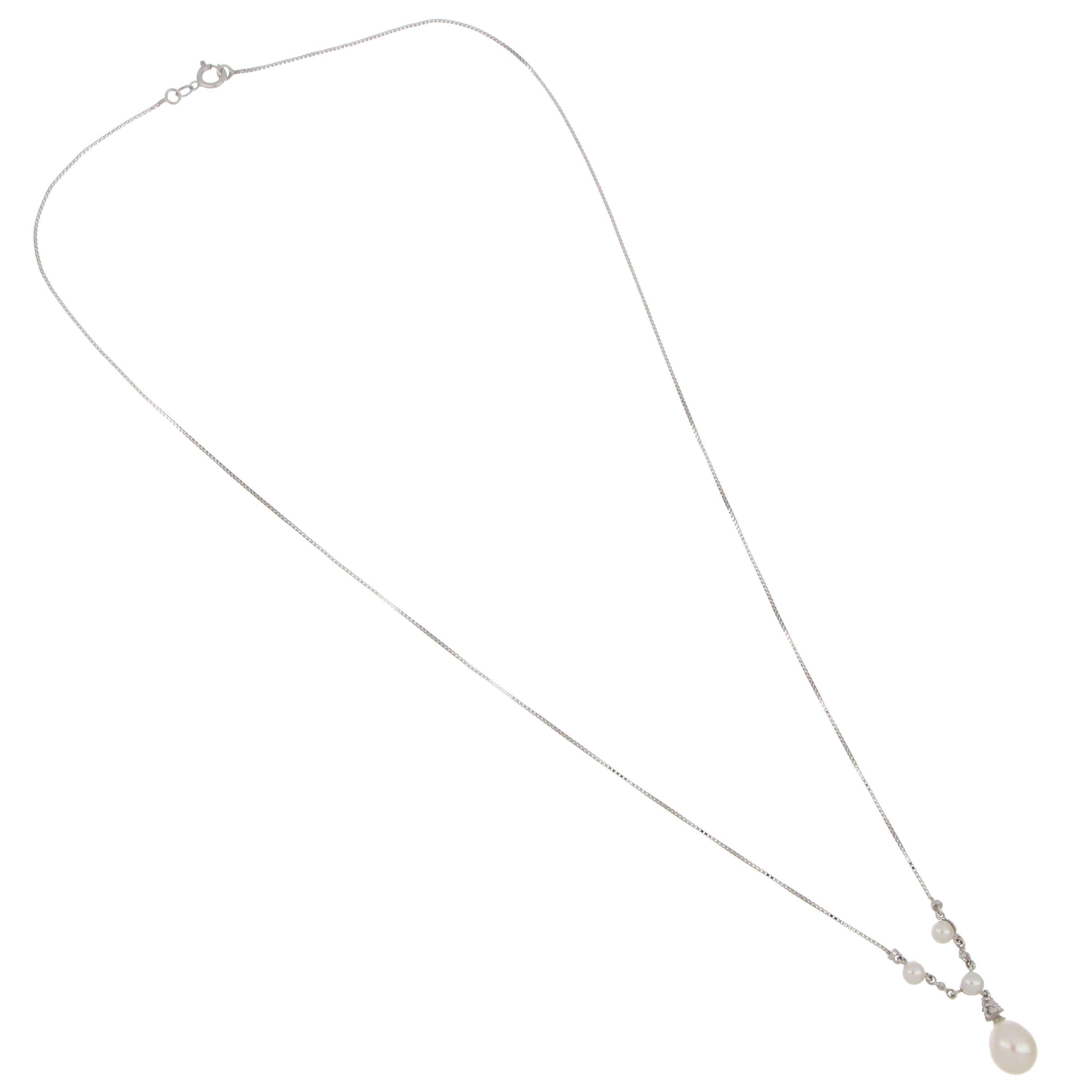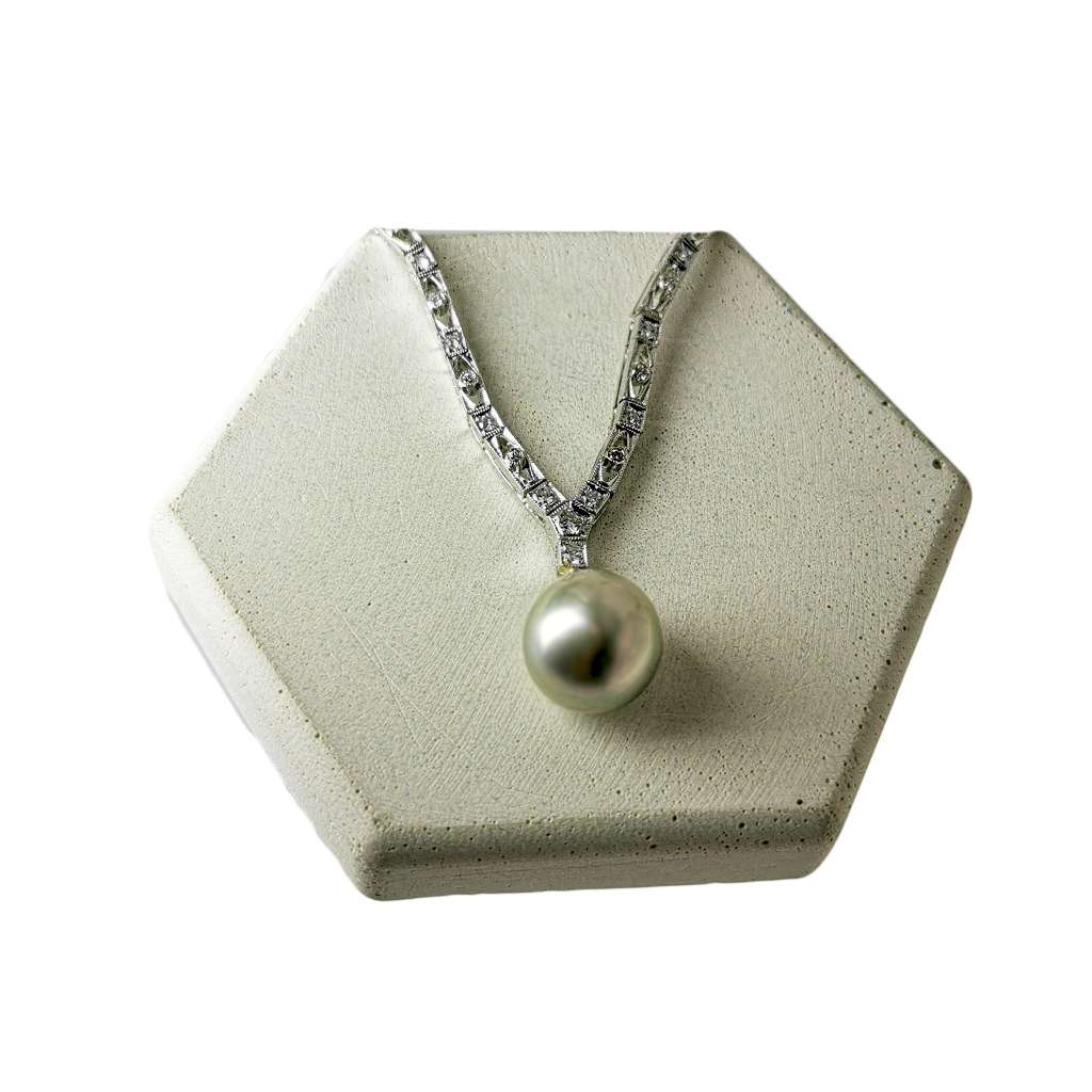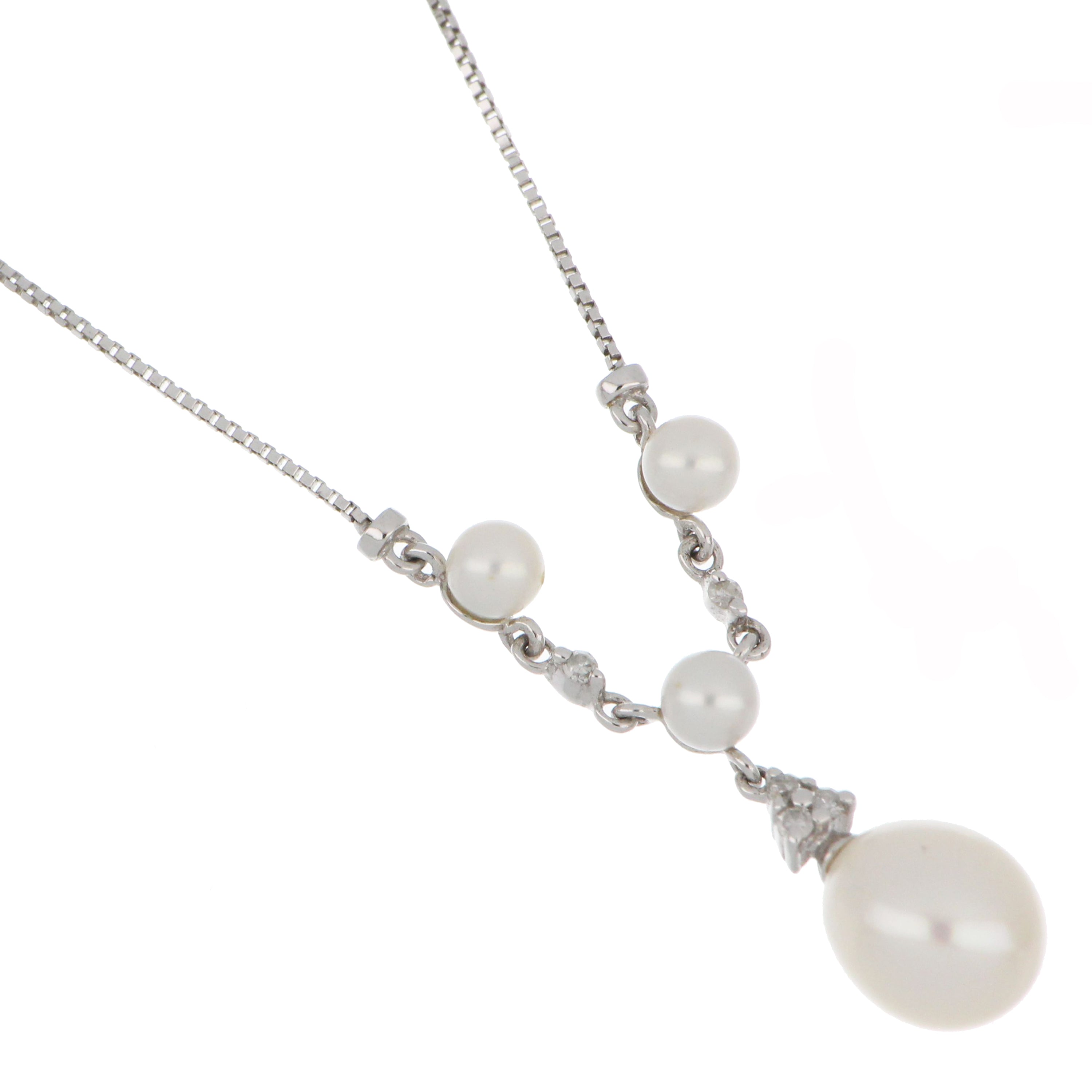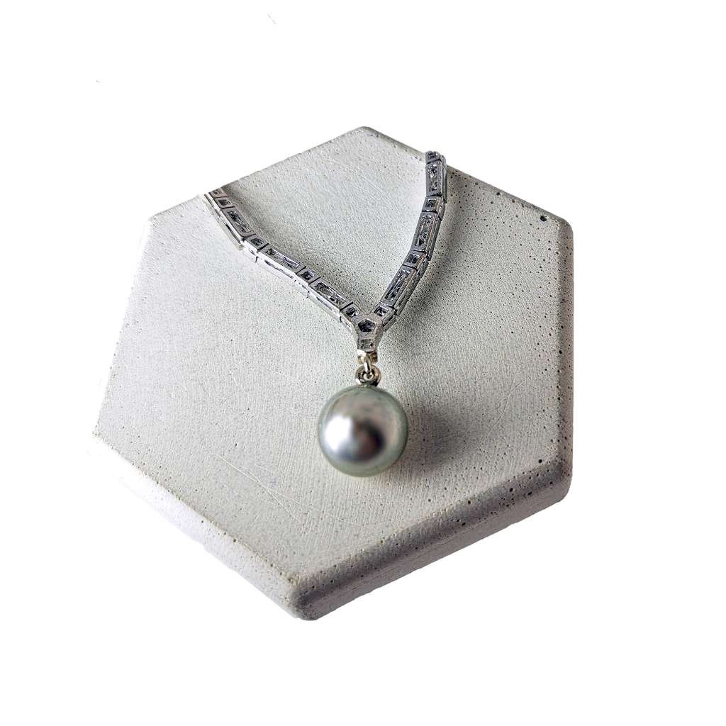 To preserve the brilliance of your white gold pearl and diamond necklace, clean gently with a soft cloth and avoid exposure to harsh chemicals or abrasive materials. Store separately in a soft pouch to protect the delicate pearl and diamonds.