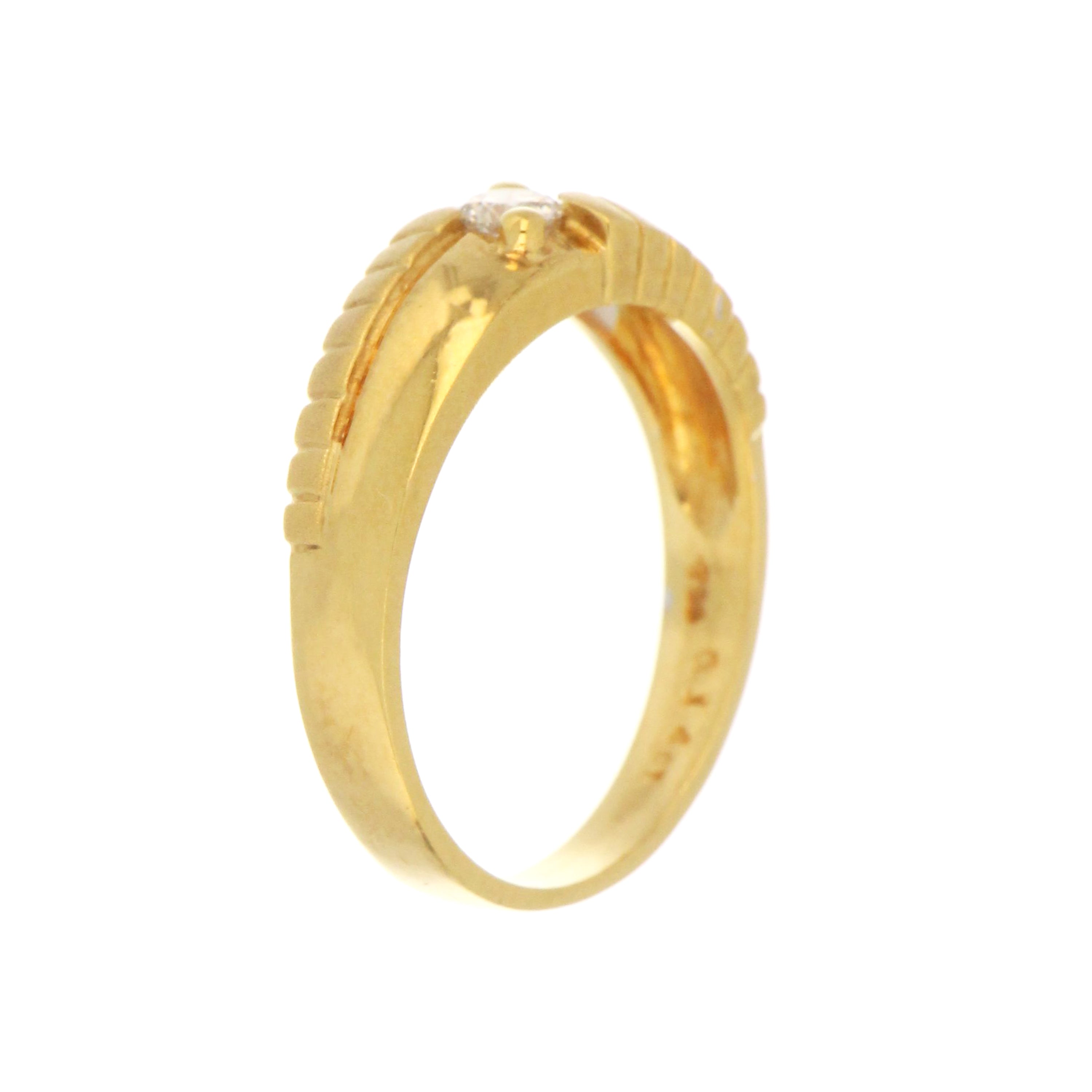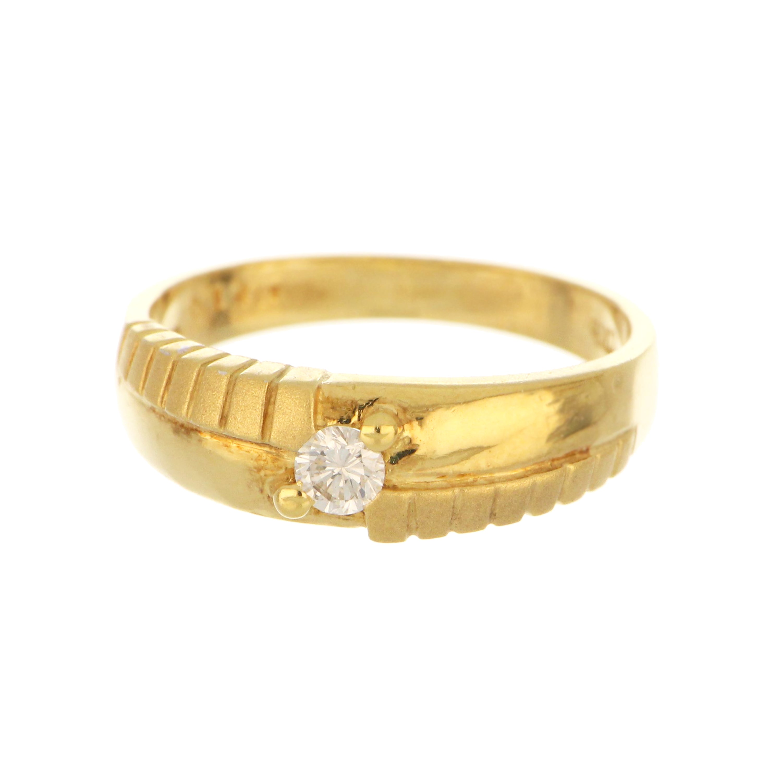 18kt yellow gold diamond ring, the round brilliant cut diamond estimated weight 0.13ct, in VS2 clarity and G color, set in claw setting. The total weight of this ring is 3.90 grams. Ring size 7.25.
