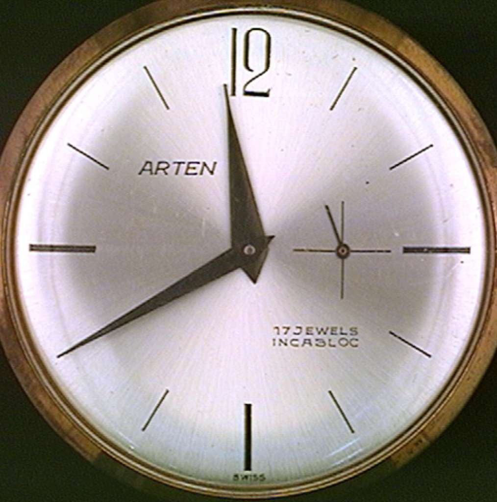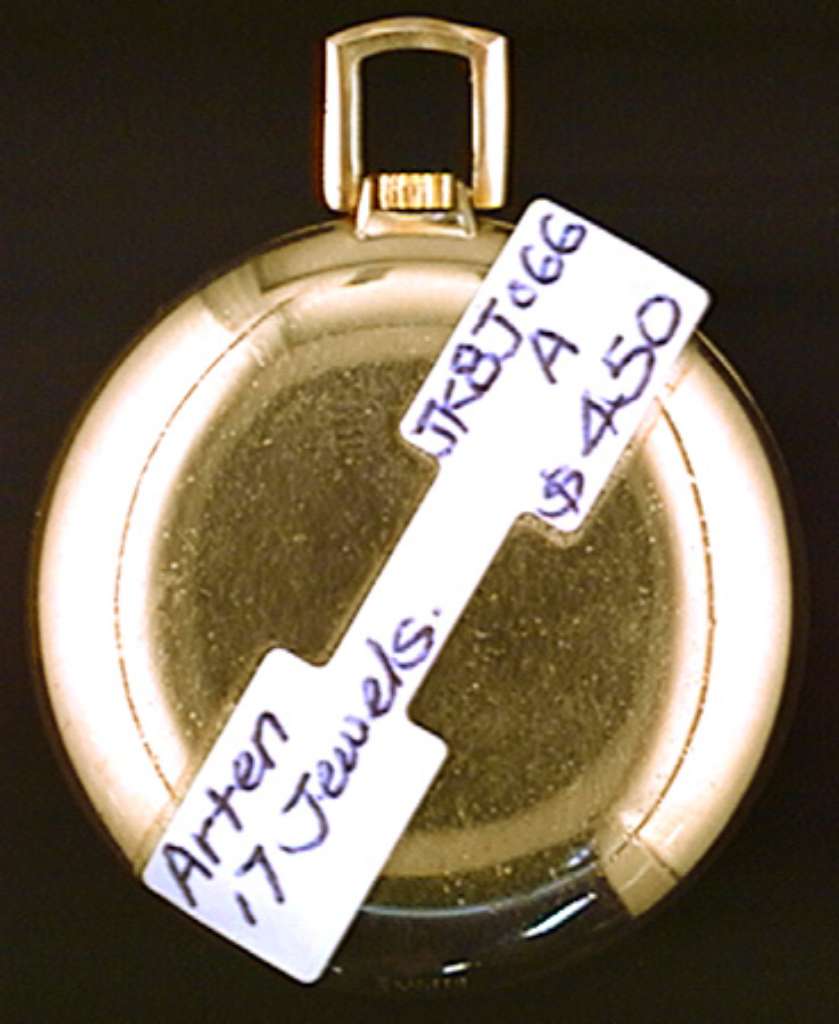 Arten pocket watch, 14kt yellow gold plated, manual wind movement, 17 jewels, Incabloc, on the case: PLAQUE G10, Swiss made.