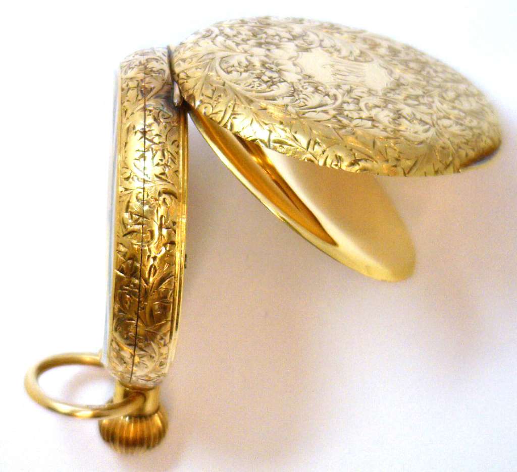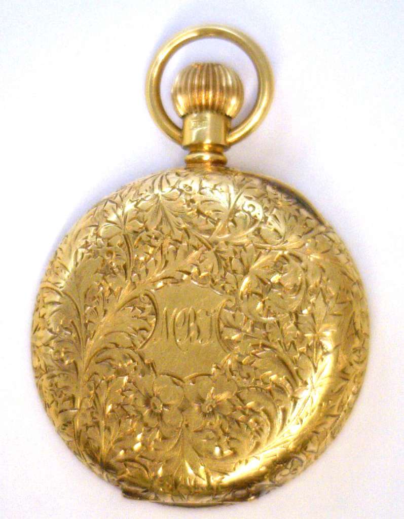 A.W.W.Co. Waltham Mass pocket watch, original 18kt yellow gold case, white color dial, manual wind movenent, 15 jewels, movement# 11009419, adjusted, on the case: A1452, the whole watch is 53.54 grams.