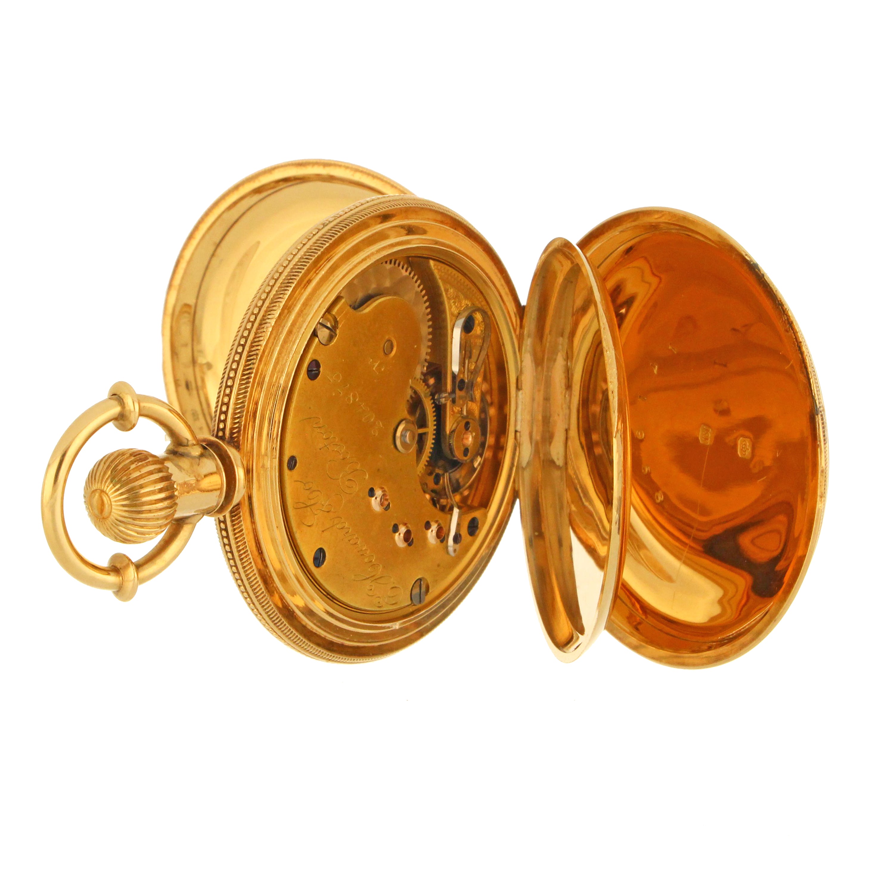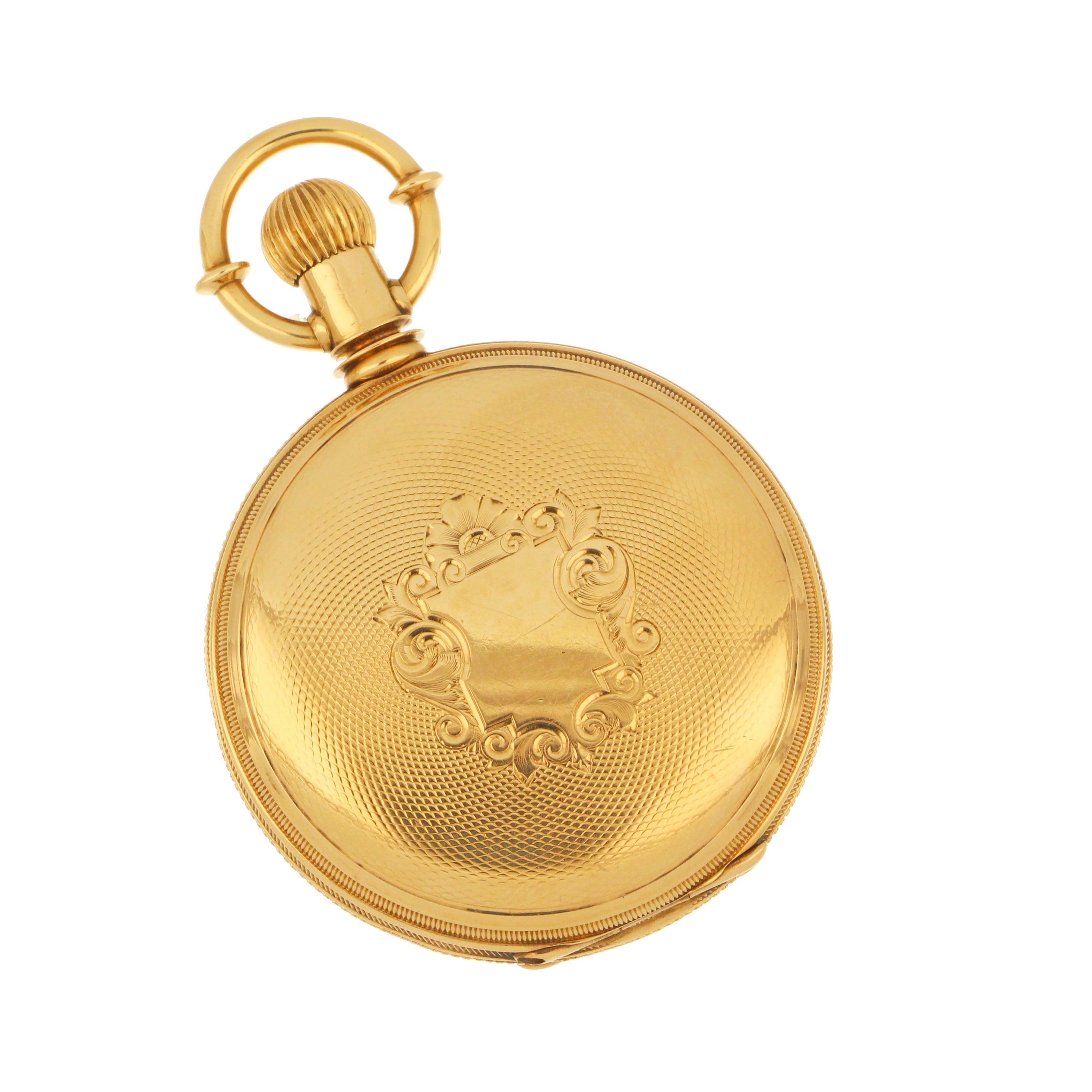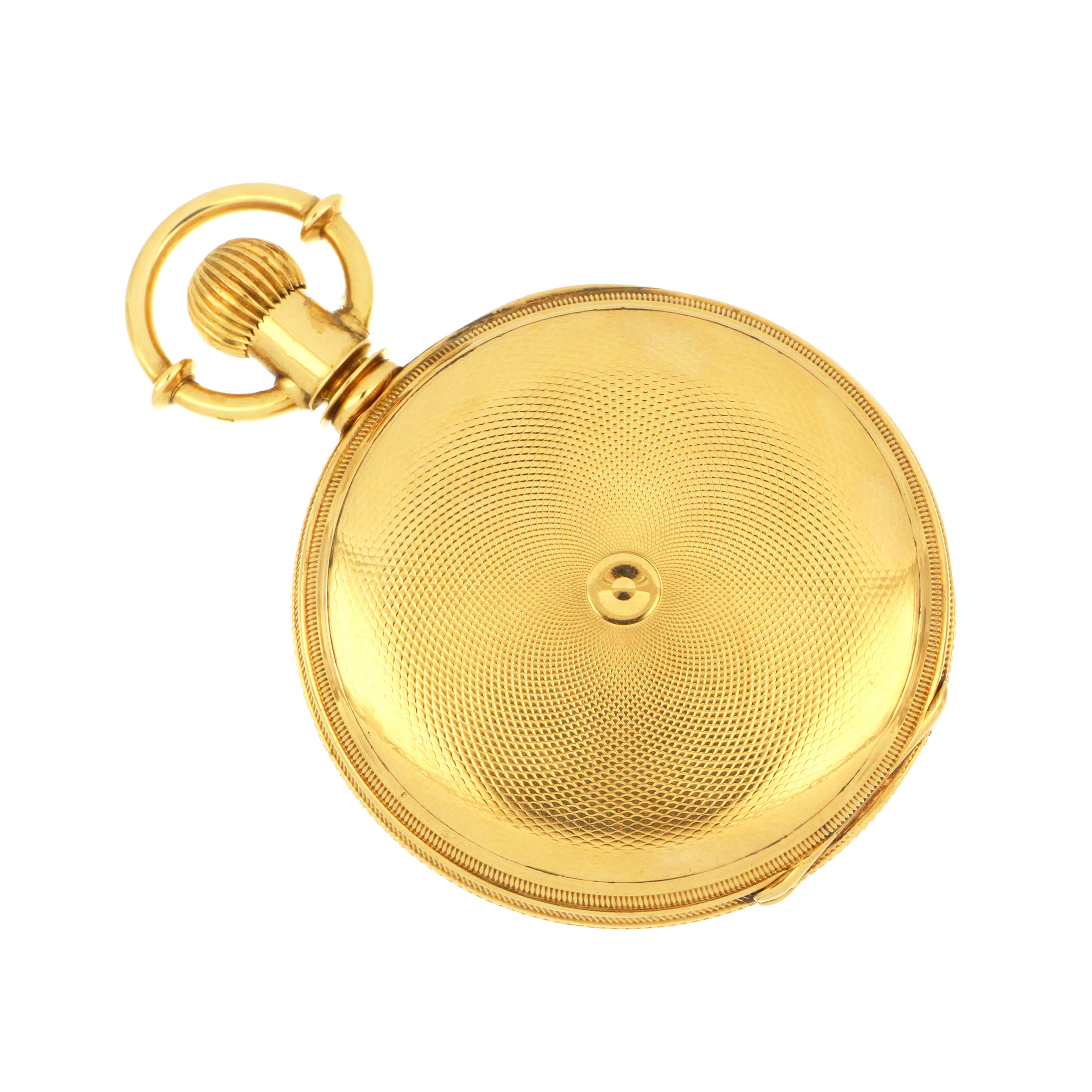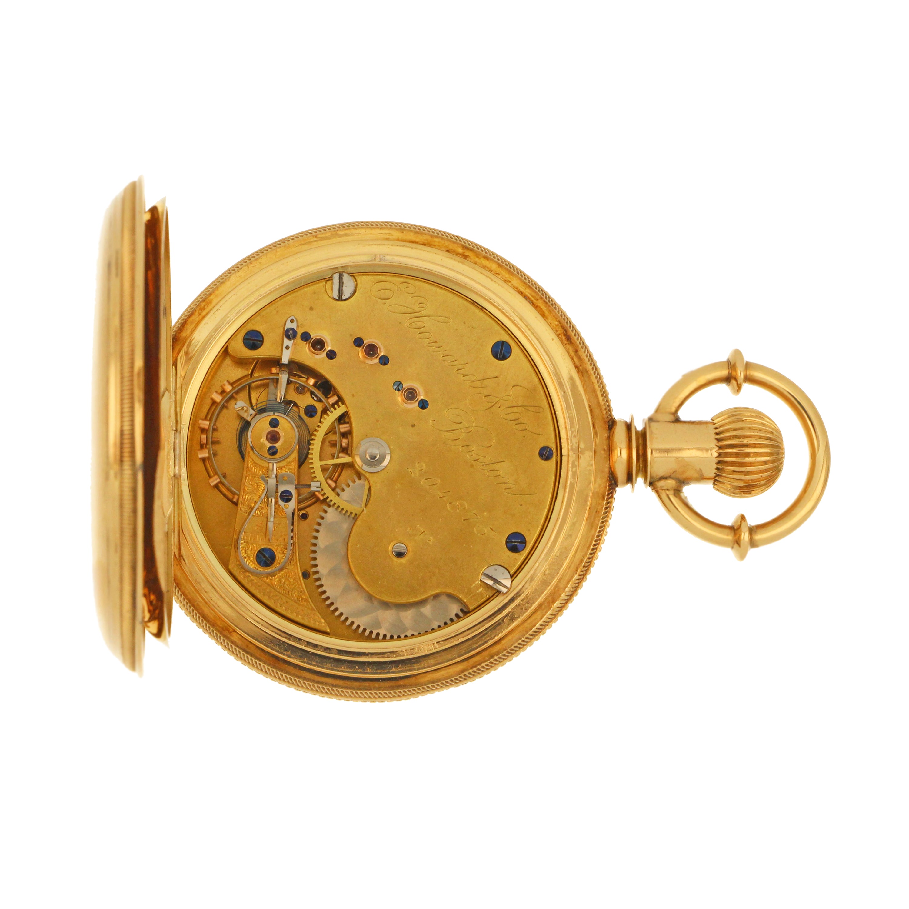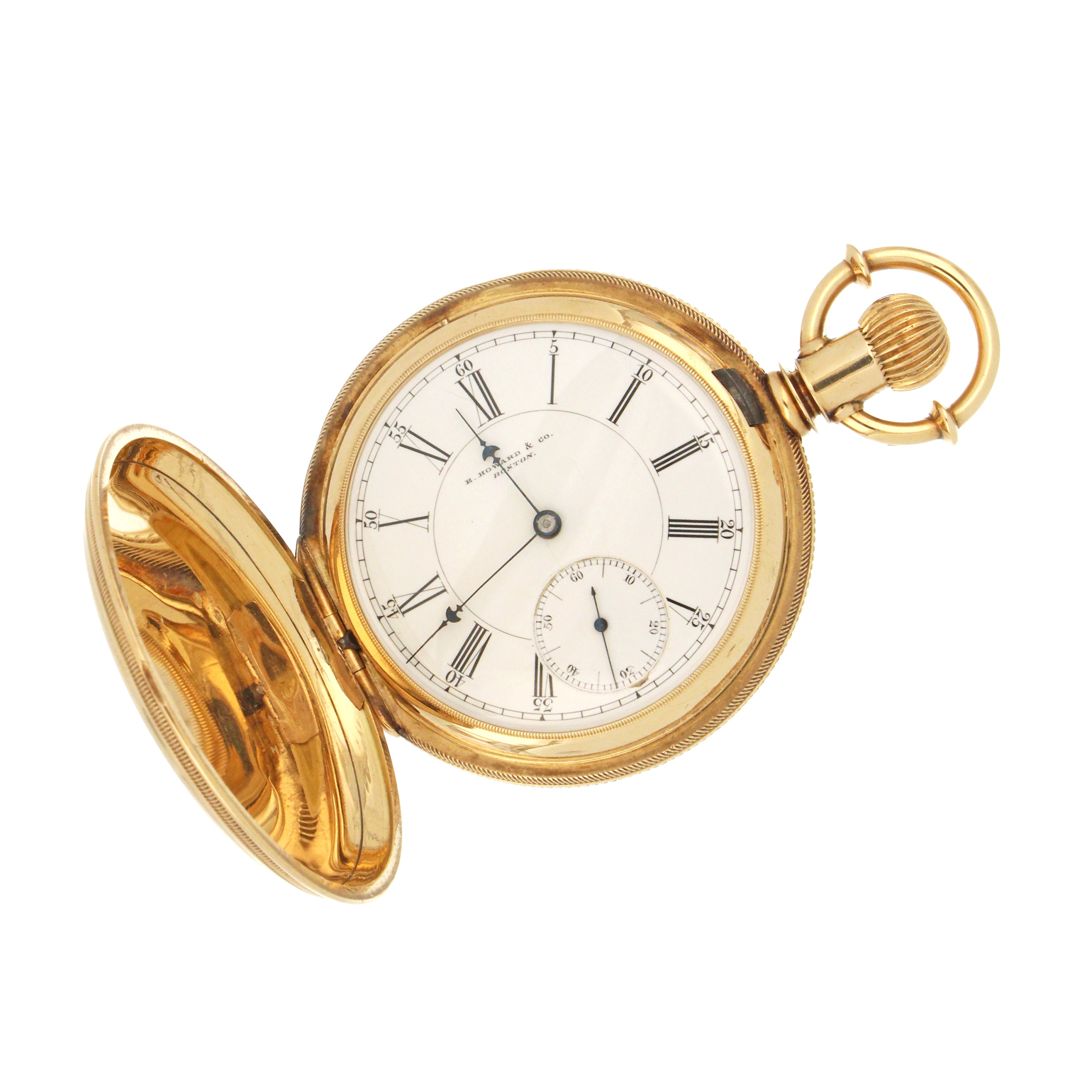 E. Howard & Co. Boston pocket watch, original 18kt yellow gold hunter case, white color porcelain dial with sub dial at 6 o'clock, movement# 204876, size N, series VII, on the back case: 171958, circa 1883. The total weight of this pocket watch is 145.63 grams.