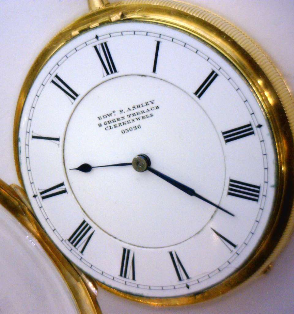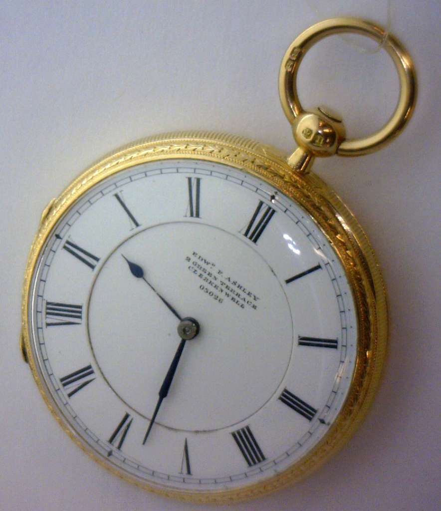 EDW.F.Ashley pocket watch, original 18kt yellow gold case, manual wind movement, model# 03026, 58.0 grams.