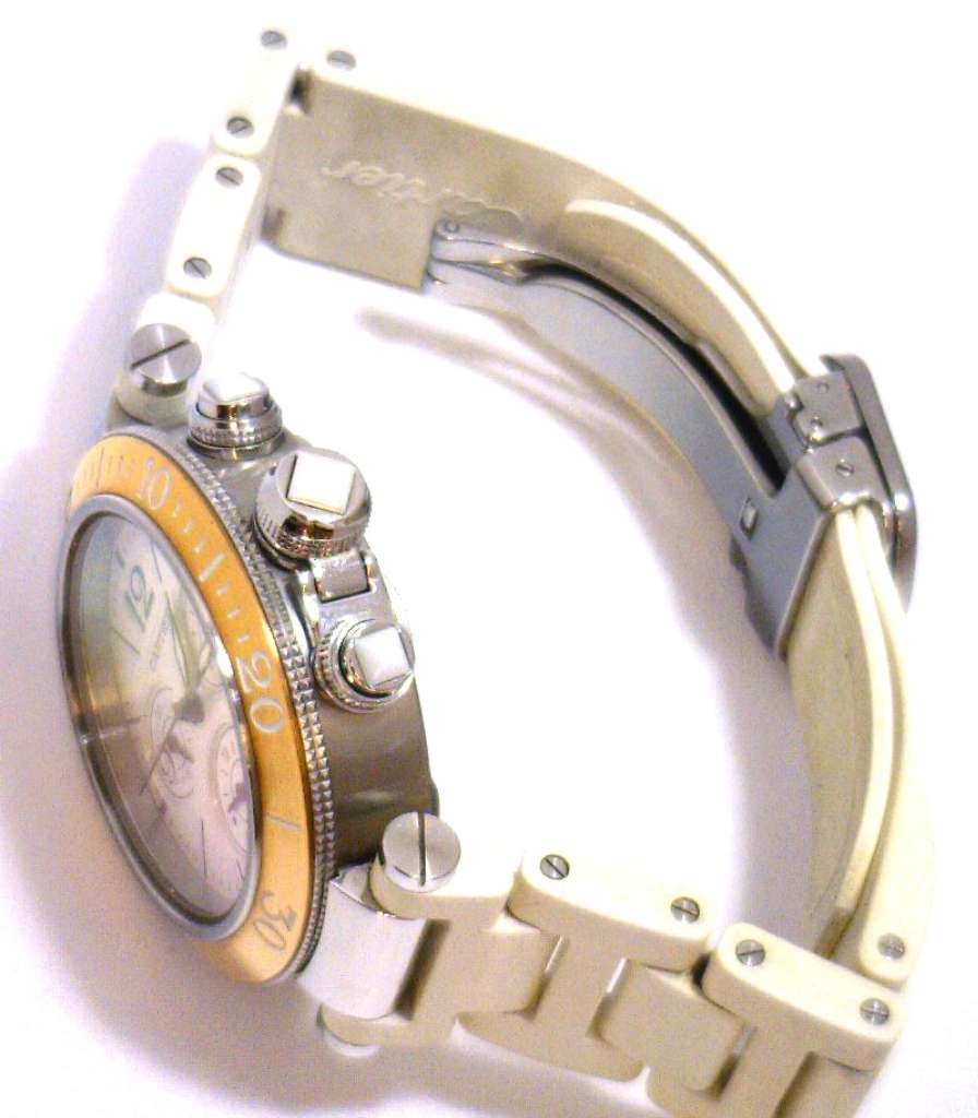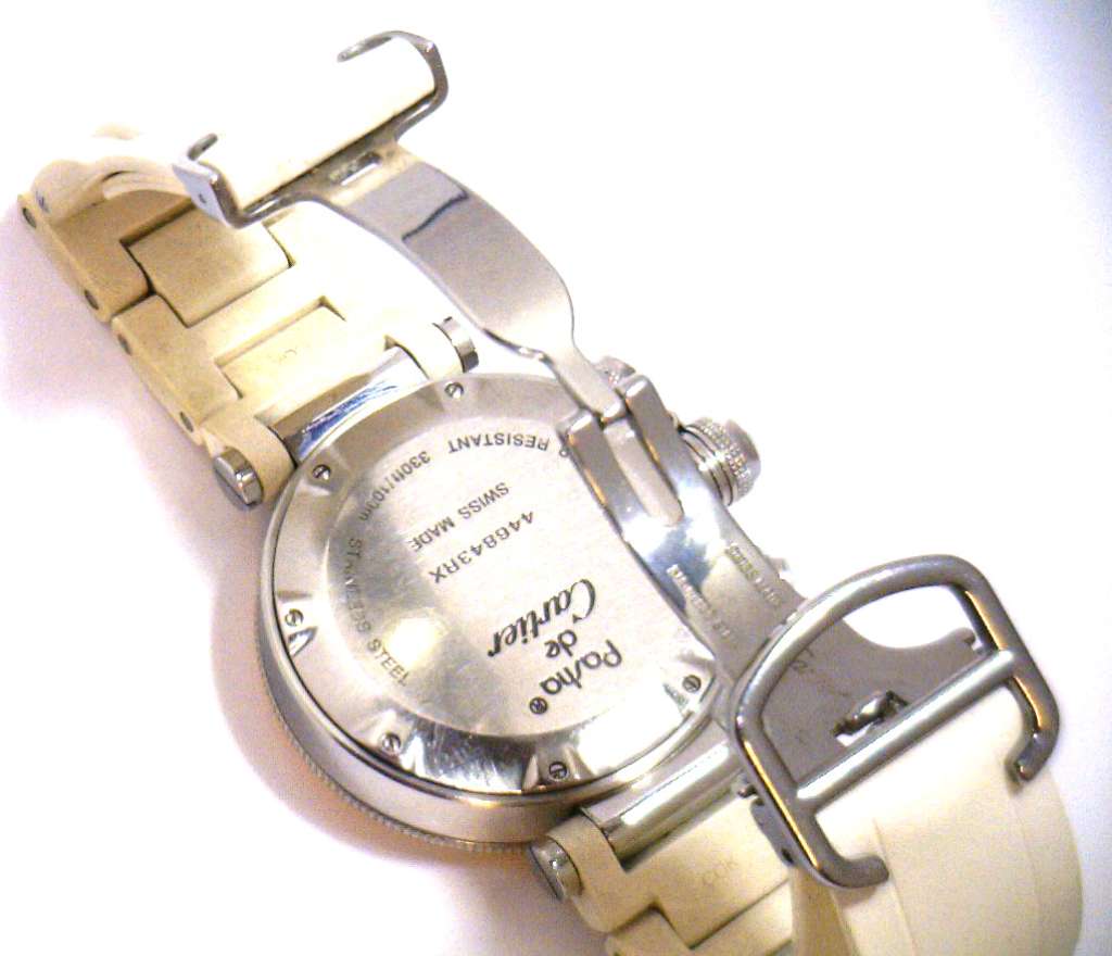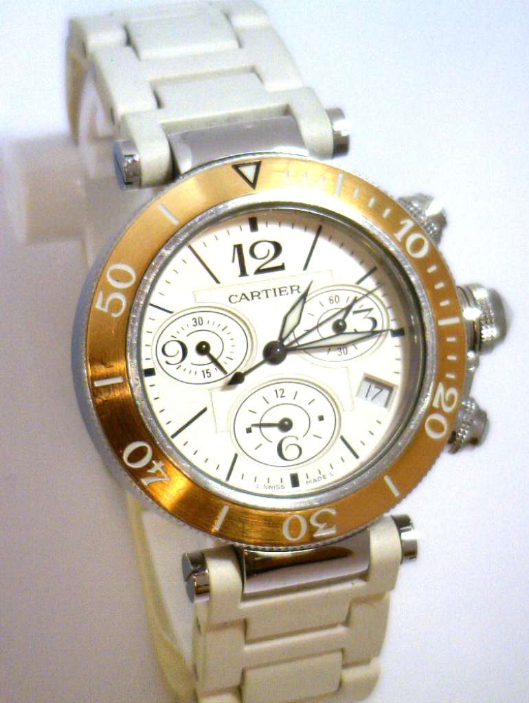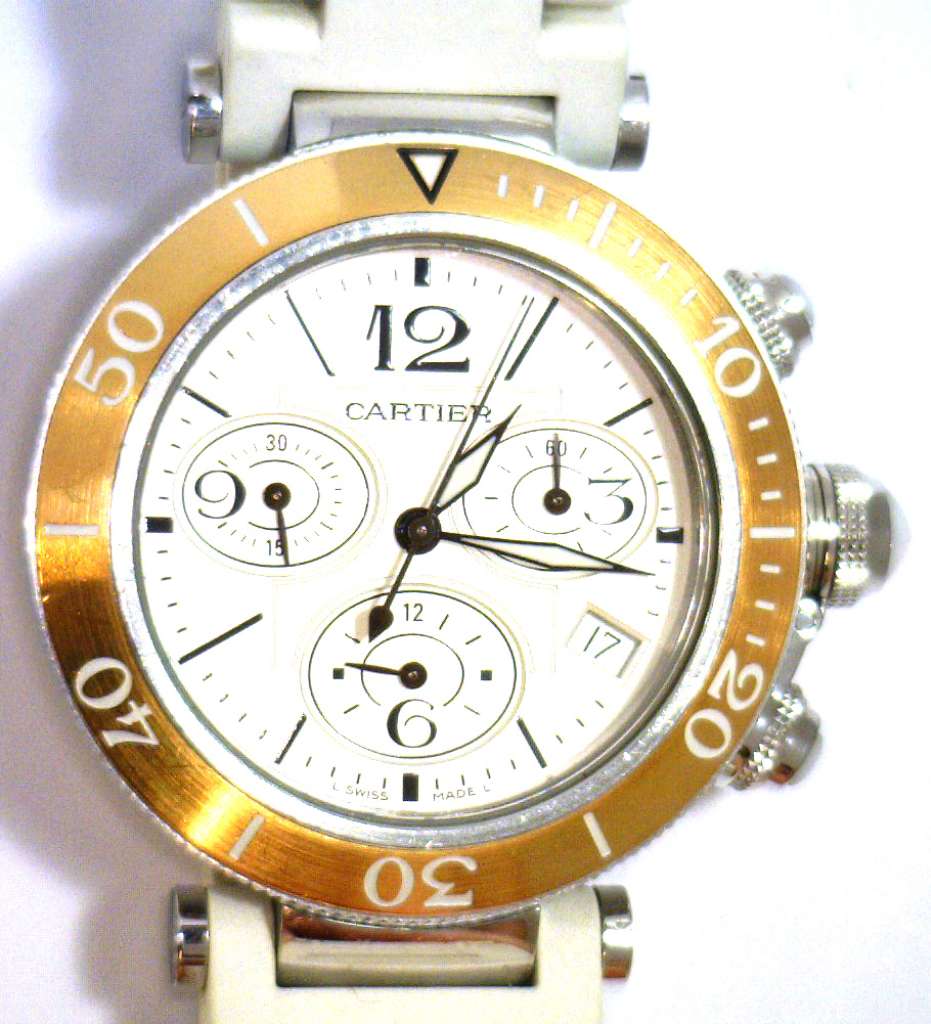 Ladies' Cartier Watch Seatimer Chronograph, original stainless steel case and white color rubber strap, quartz movement, 330ft/100m, model# 3129, serial# 446843RX, without original Cartier box or certificate.