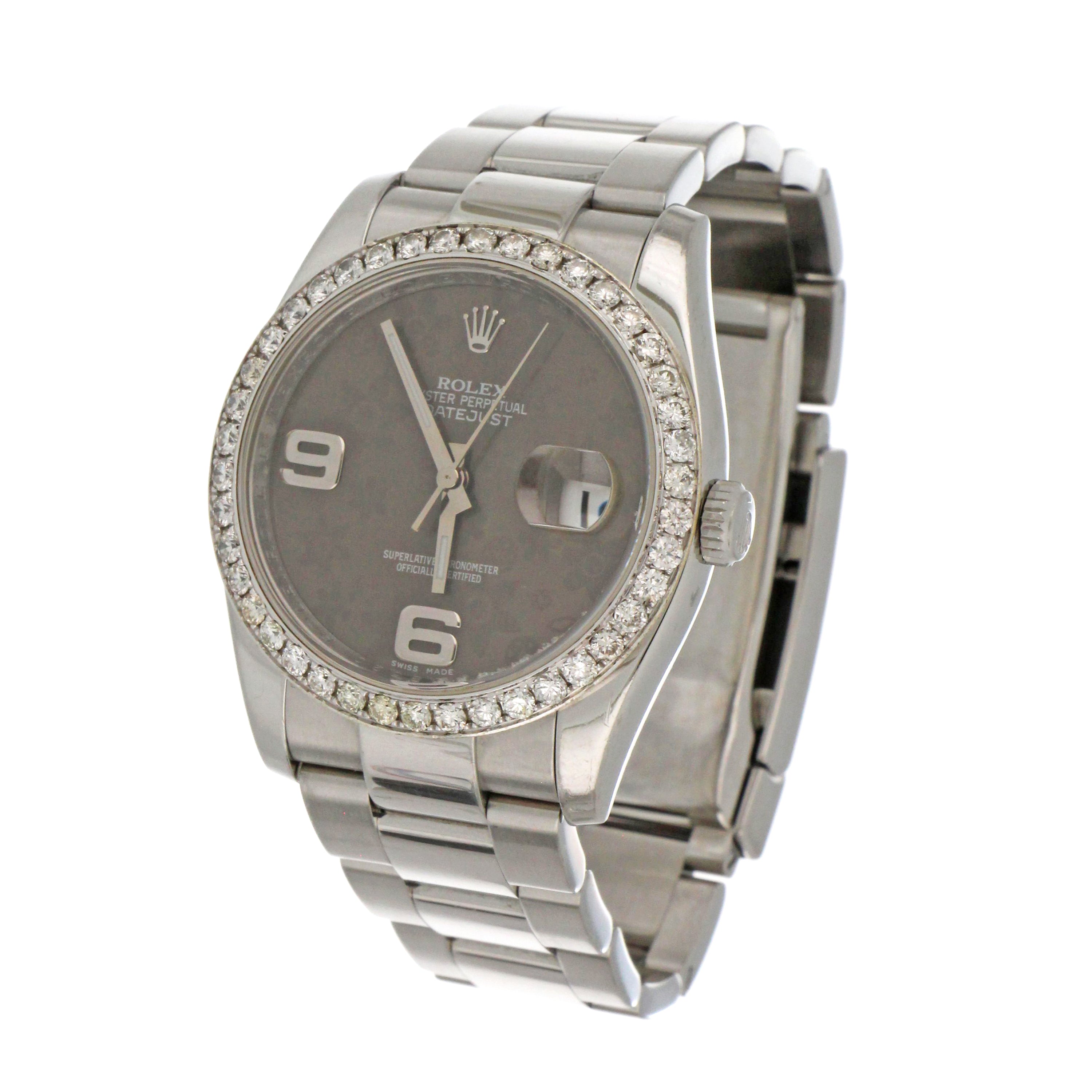 Ladies' Rolex Oyster Perpetual Datejust, original stainless steel case and oyster bracelet, brown floral dial, secondary diamond bezel, model# 116200, serial# M4583XX, caliber# 3135, 31 jewels, movement# 3.1833974, 36mm case, circa 2007-2008, without original Rolex box and certificate.