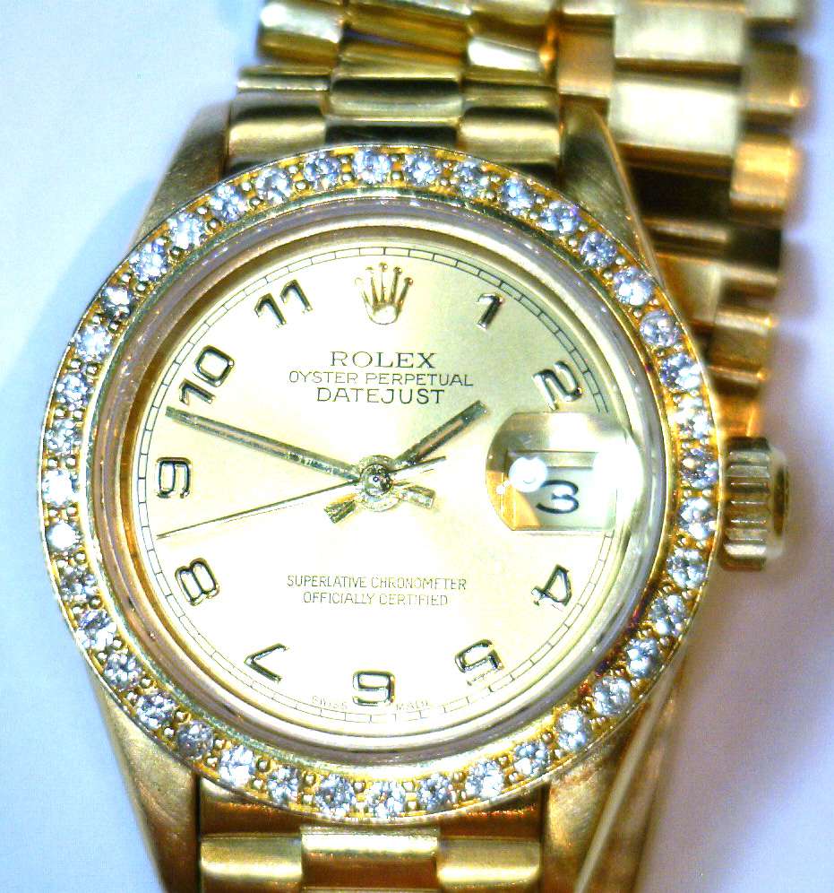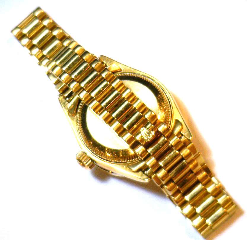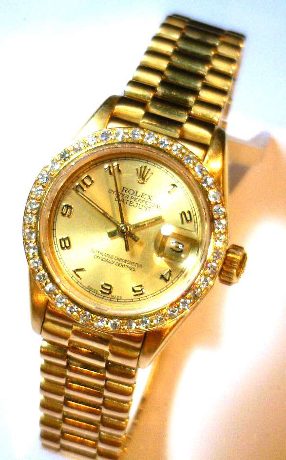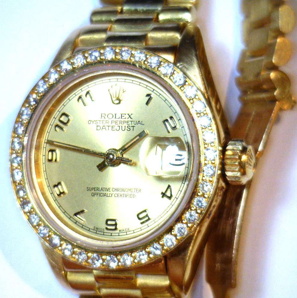 Ladies' Rolex Oyster Perpetual Datejust, original 18kt yellow gold case and president bracelet, diamond bezel, model# 69178, serial# 8563048, caliber# 2135, 29 jewels, movement# 1382431, circa 1984, without original Rolex box or certificate.