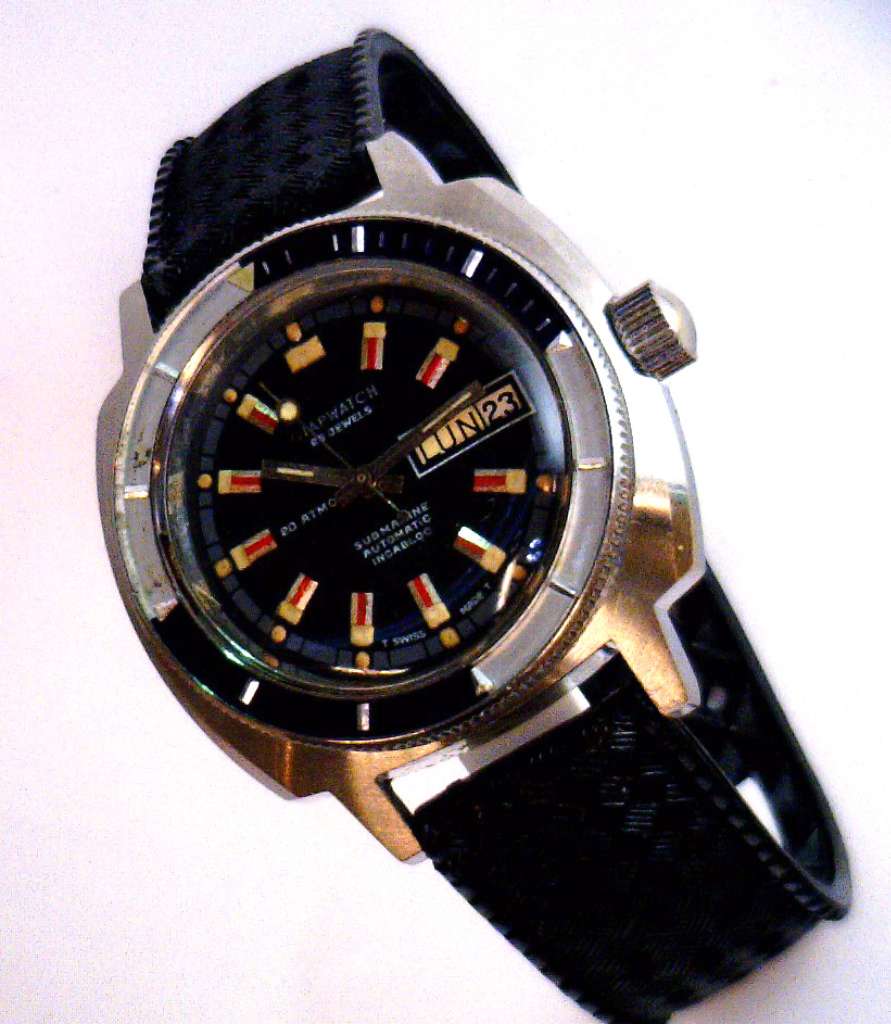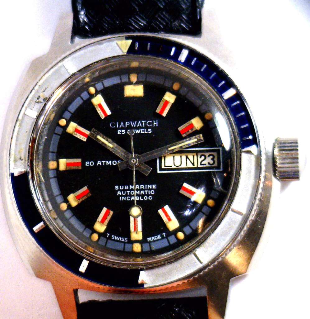 Mens' Ciap watch, submariner day & date, original stainless steel case, black rubber strap, automatic movement, 25 jewels, 20ATM, rotating bezel, on the movement: 2788 QH.