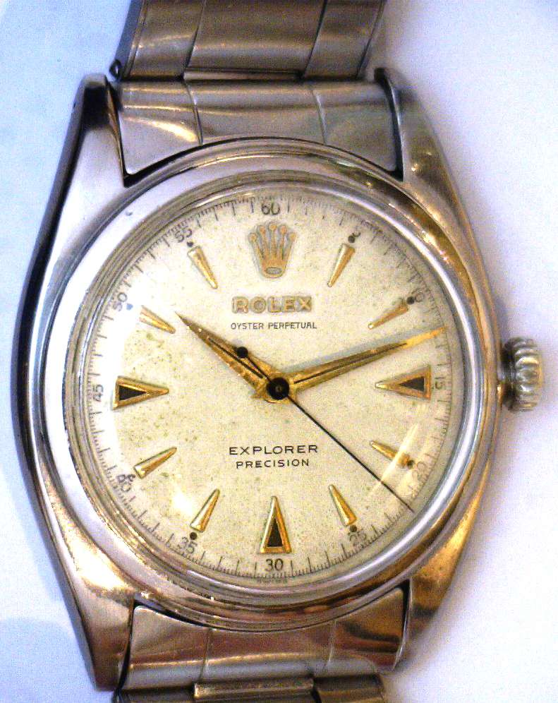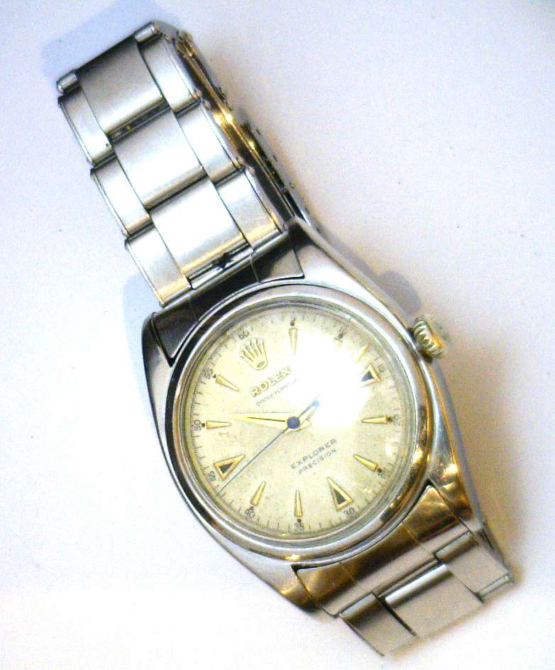 Mens' Rolex Oyster Perpetual Explorer Precision, original stainless steel case and stretch style oyster bracelet, model# 6098, serial# 846850, caliber# 775, 25 jewels, movement# 07008, circa 1951, without orignal Rolex box and certificate.