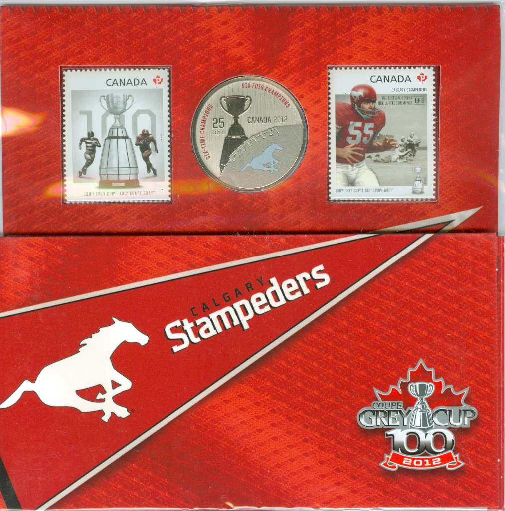Canada Base Metal 2012 25 Cents Set Calgary Stampeders - Football League Coin & Stamp SP