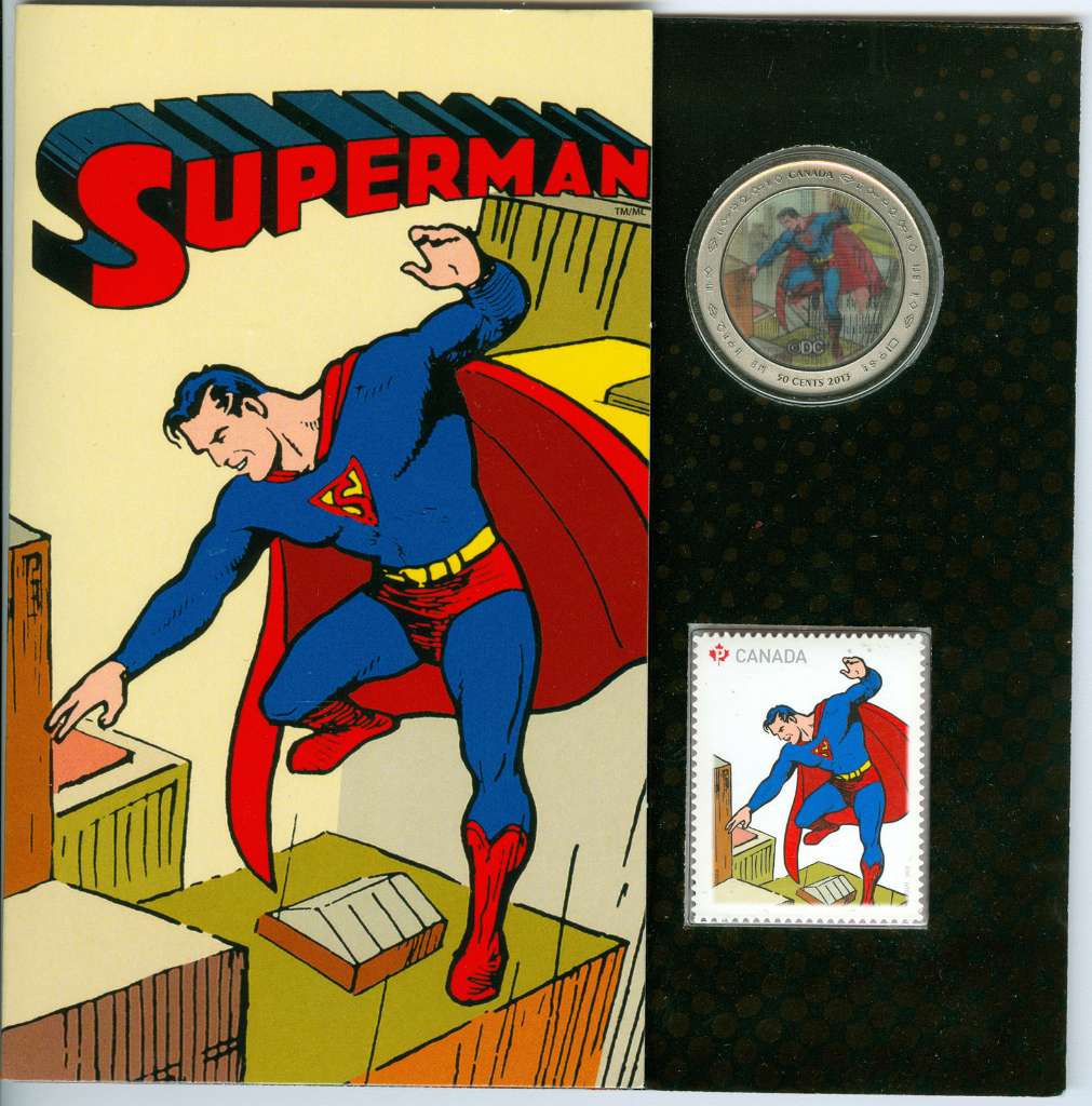 ¥ This exceptional set features a Superman-themed coin by the Royal Canadian Mintand collectible stamp by Canada Post.