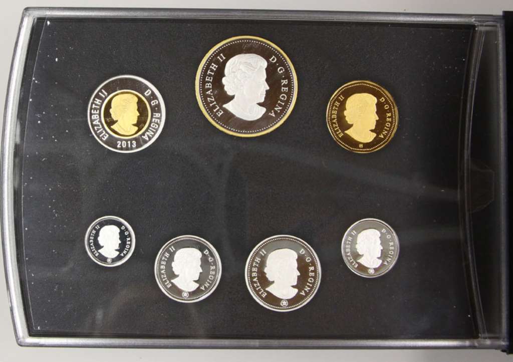 The entire Proof Set is struck in 99.99% Fine Silver. Proof Set only: The $1 and $2 are gold plated, while selective gold plating enhances the design of the Proof Dollar.