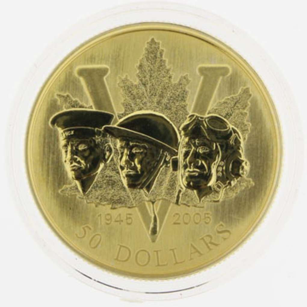 Canada Gold 2005 $50 60th Anniversary of the End of 2'nd World War .225oz, .583