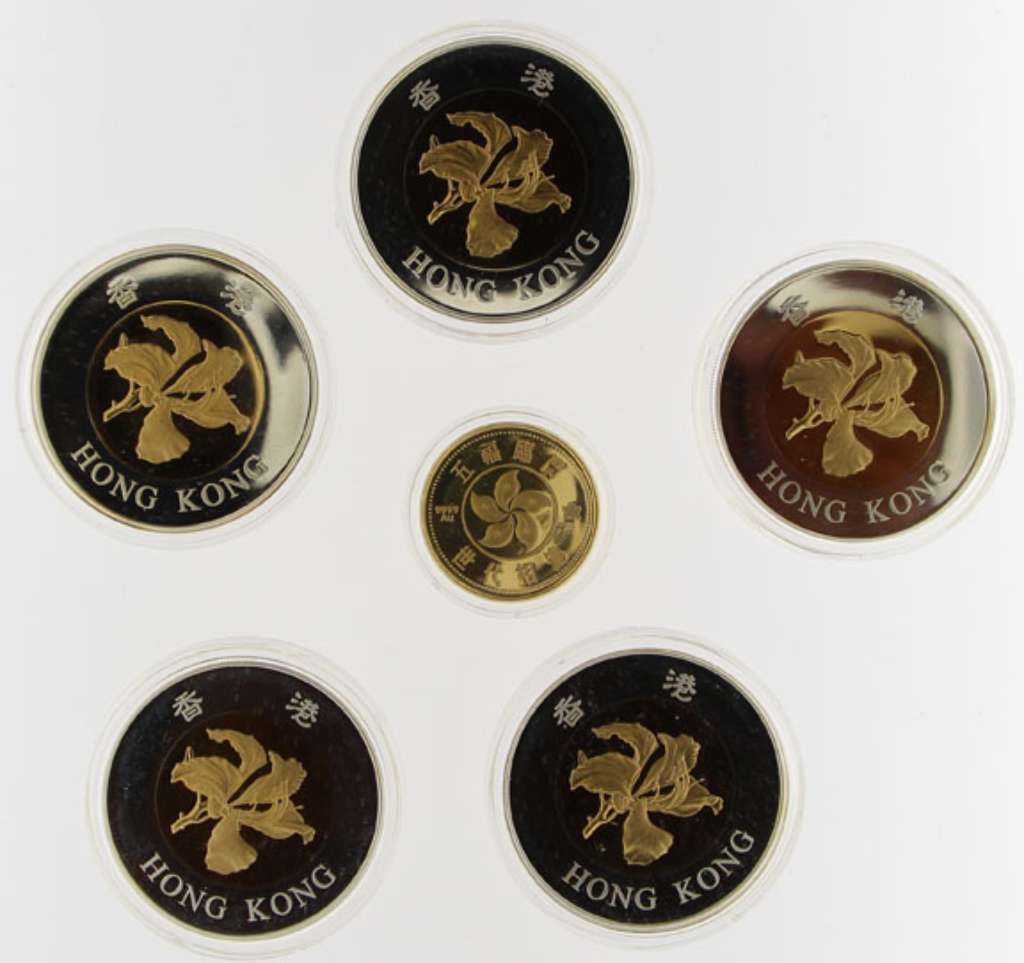 Canada Silver 2002 Set Hong Kong The Five Blessings with 4 .925 Silver Coins and one Gold Medallion (made by the RCM), .9999