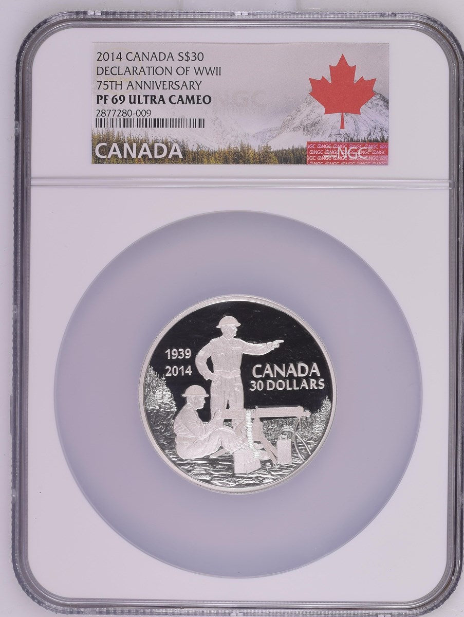 Canada Silver 2014 $30 Canadian Machine Gunner in Training - 75th Anniversary of the Declaration of World War II 2.016oz, .9999