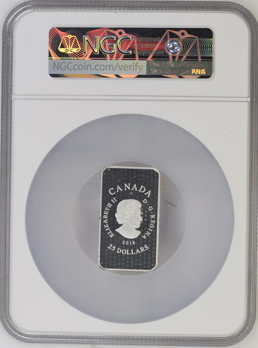 The four rectangular coins in your set are 99.99% pure silver. Each one measures 28.6 millimetres wide by 49.8 millimetres long, and has a nominal metal weight of 47.34 grams (1.5 ounces). All four rectangular coins bear original art by artist Trevor Tennant, who drew inspiration from the 18th century Lionet and Provence Pattern of court cards. Each reverse mimics the period style of the playing cards that were usedas currency in New France. It features full colour over the engraved depiction of a King from one of four suits: spades, hearts, diamonds and clubs.