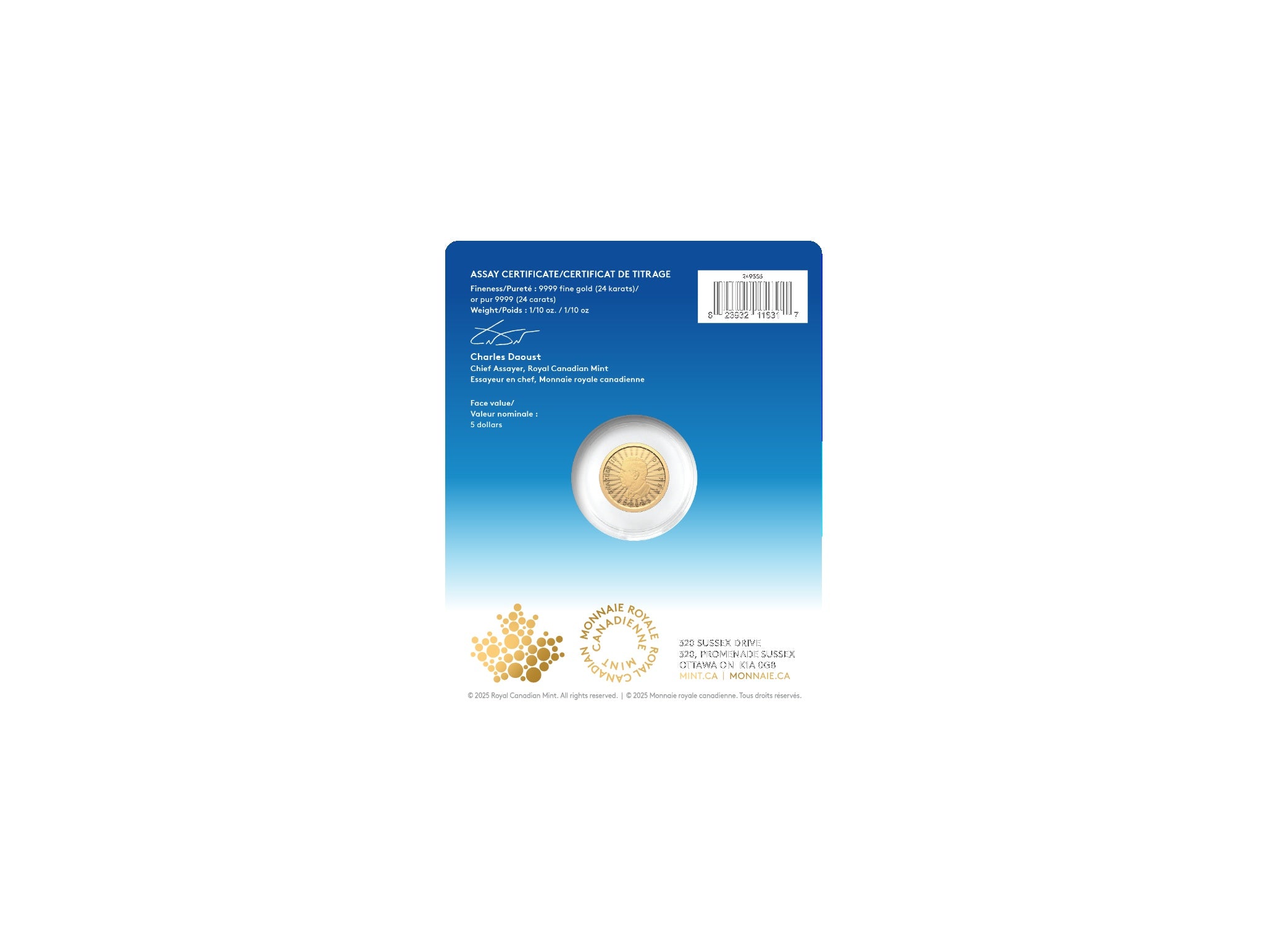 A: The coin is struck in 99.99% pure gold and weighs 0.1 oz, guaranteeing fine quality and precise measurement.