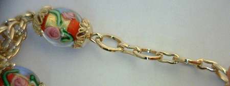 Custom made bracelet, 10kt yellow gold bracelet with glass beads in the middle. Our goldsmith made this bracelet to look the same as the original not gold sample provided by the customer. ( Call for price quotation depending on the type of metal, karat, quality and quantity of gemstones, etc. and whether or not you supply your own metal or gemstones. ) Product Code#: CUSTOM MISC 1 Metal: 10k, 14k, 18k, 19k, Platinum Color: white, yellow, rose Stone: diamond, gem stone Price: depends on metal and stone, etc.