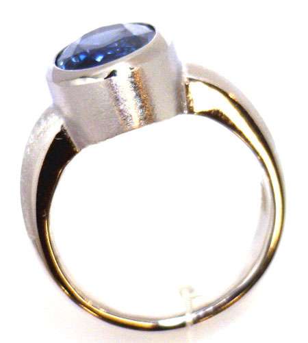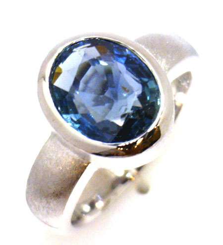 Custom made 14kt white gold blue sapphire ring, the oval shaped blue sapphire estimated 1.65ct, set in full bezel setting with brushed finishing on the shank. ( Call for price quotation depending on the type of metal, karat, quality and quantity of gemstones, etc. and whether or not you supply your own metal or gemstones. ) Product Code#: CUSTOM RING 1 Metal: 10k, 14k, 18k, 19k, Platinum Color: white, yellow, rose Stone: diamond, gem stone Price: depends on metal and stone, etc.