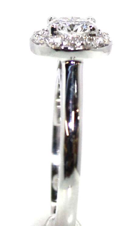 Custom-made 14kt white gold diamond engagement ring designed in Halo style, the center brilliant cut diamond estiamted weight 0.50ct. ( Call for price quotation depending on the type of metal, karat, quality and quantity of gemstones, etc. and whether or not you supply your own metal or gemstones. ) Product Code#: CUSTOM RING 17 Metal: 10k, 14k, 18k, 19k, Platinum Color: white, yellow, rose Stone: diamond, gem stone Price: depends on metal and stone, etc.