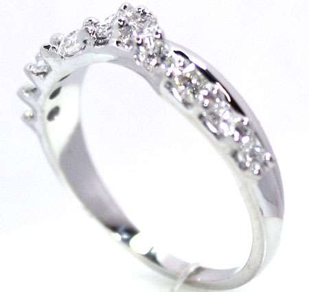 Custom-made 14kt white gold matching diamond wedding band, 10 pieces of piencess cut diamonds estimated weight 0.50cttw, in SI1 clarity and G-H color, set in 4-claw setting with highly polished shank. ( Call for price quotation depending on the type of metal, karat, quality and quantity of gemstones, etc. and whether or not you supply your own metal or gemstones. ) Product Code#: CUSTOM RING 9 Metal: 10k, 14k, 18k, 19k, Platinum Color: white, yellow, rose Stone: diamond, gem stone Price: depends on metal and stone, etc.