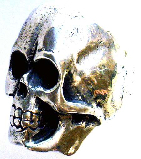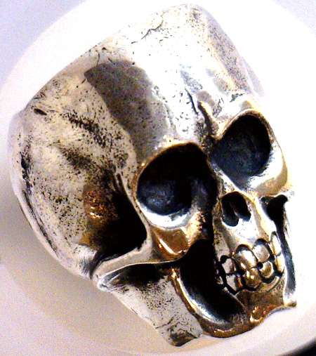 Custom-made skull ring, sterling silver ring designed in a skull style with oxidized finishing. ( Call for price quotation depending on the type of metal, karat, quality and quantity of gemstones, etc. and whether or not you supply your own metal or gemstones. ) Product Code#: CUSTOM RING 8 Metal: 10k, 14k, 18k, 19k, Platinum Color: white, yellow, rose Stone: diamond, gem stone Price: depends on metal and stone, etc.
