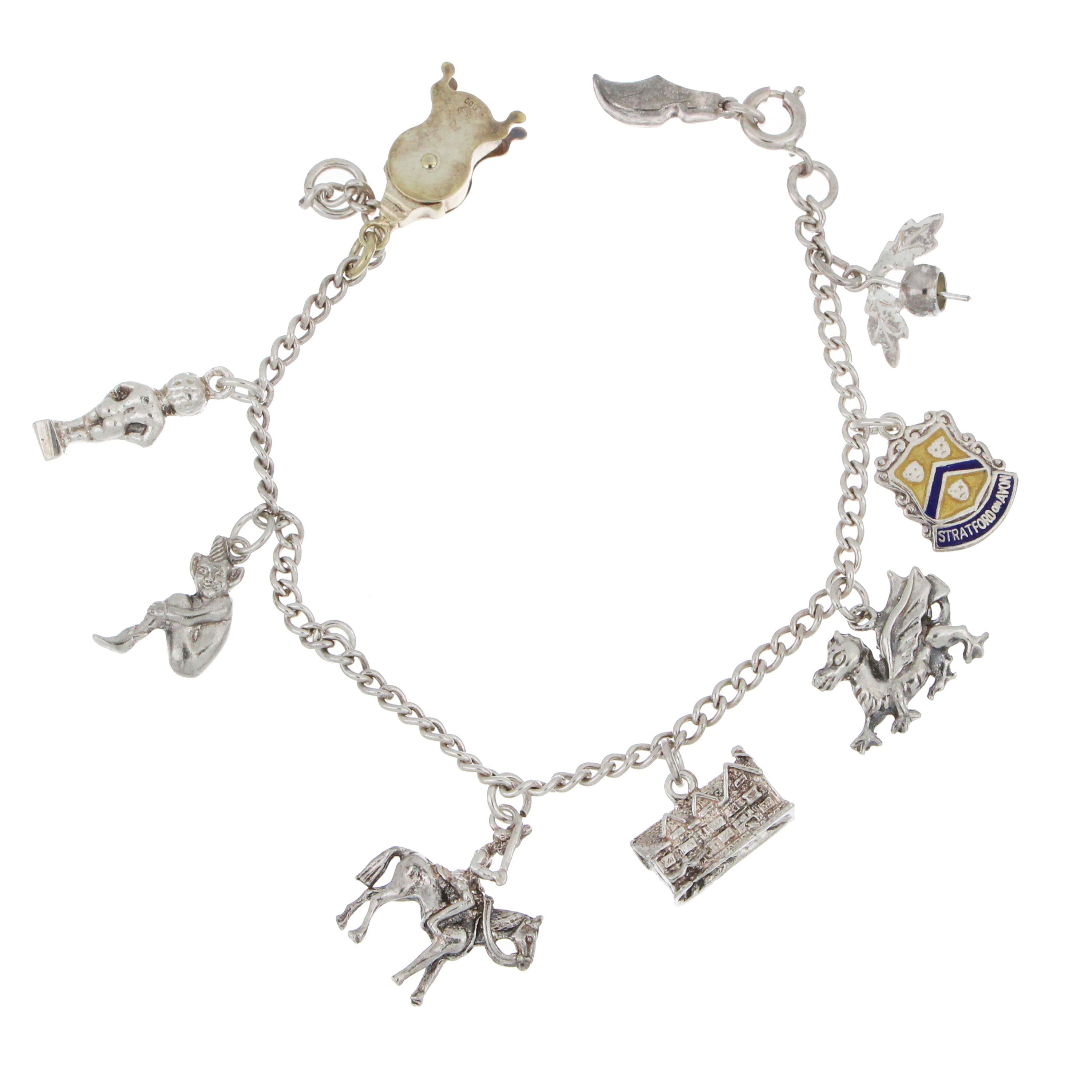 Discover this elegant sterling silver charm bracelet featuring an exquisite collection of charms including a clock, house, and horse. Weighing 21.25 grams and measuring 7 inches in length, this vintage bracelet combines timeless design with fine craftsmanship, ensuring a standout addition to your jewelry collection. Crafted from high-quality silver, this pre-owned piece is offered as-is, perfect for collectors and enthusiasts seeking an authentic investment in rare and collectible jewelry.